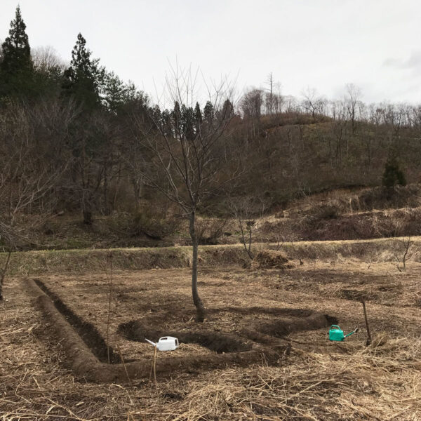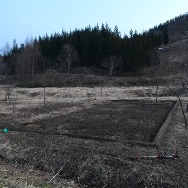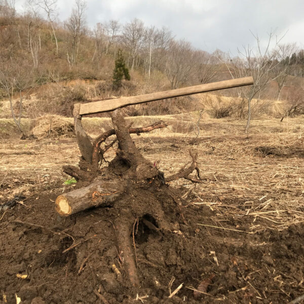 田んぼ はじめの一歩 – 2020年春 2022年に一燈のための田んぼに加わる田んぼ。2020年春、耕作放棄地を田んぼに戻した初めての場所だ。 羽後町軽井沢の奥の奥。30年もの耕作放棄地の脇には山からの清冽な水が小さな沢となって流れている。そして山間部なのにぽっかりと開けた場所。土も水も日当たりもいい。理想の場所が見つかった。 木を切り、根っこを抜いて、畔を作る。 まずはひとつ目。 すべて手作業。 PREV NEXT