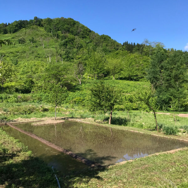 ここも山から絞り出た清らかな水が集まり、小さな沢となって田んぼ脇を流れている。田んぼのさらに上流はご覧の通りの大自然。もちろん、田んぼもなければ民家もない。