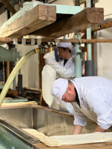 また、酒造りにおいては、効率や便利さを追求せず、酒蔵の伝統的な手仕事が生きています。仕込み水には、奥羽山脈からの伏流水が湧く「琵琶沼寒泉」を使用。オリジナル乳酸菌である「まがたま乳酸菌」を用いた生もと造りで仕込み、古式槽(ふね)しぼりで丁寧に搾りました。
